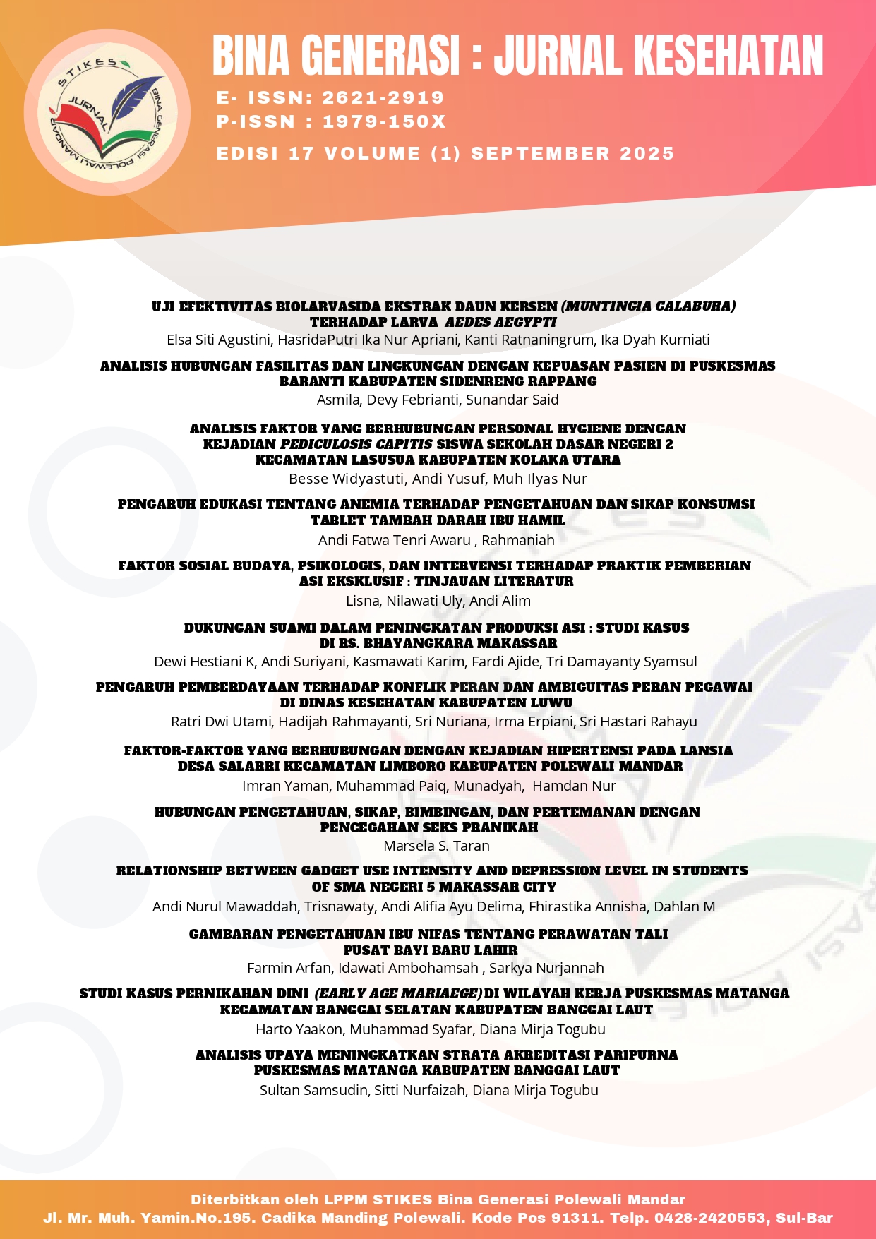 - Semua Informasi yang terdapat di JURNAL Kesehatan Bina Generasi bersifat akademik.JURNAL Kesehatan Bina Generasi tidak bertanggung jawab terhadap kerugian yang terjadi karana penyalah gunaan informasi dari situs ini.